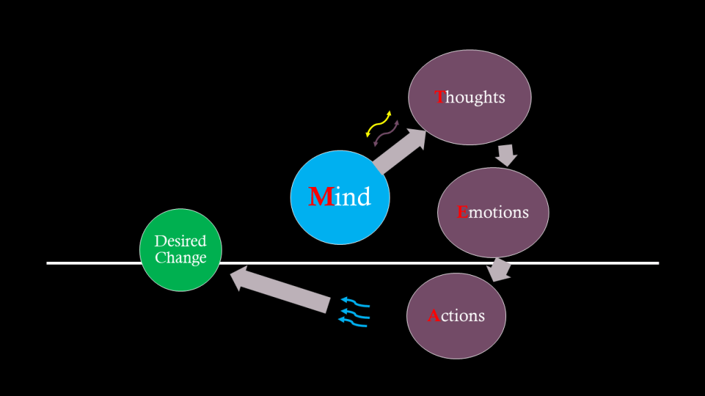 Your MIND is responsible for your THOUGHTS, and your thoughts determine your EMOTIONS. Then your emotions shape your ACTIONS. And in the end, those actions produce the CHANGE you desire.