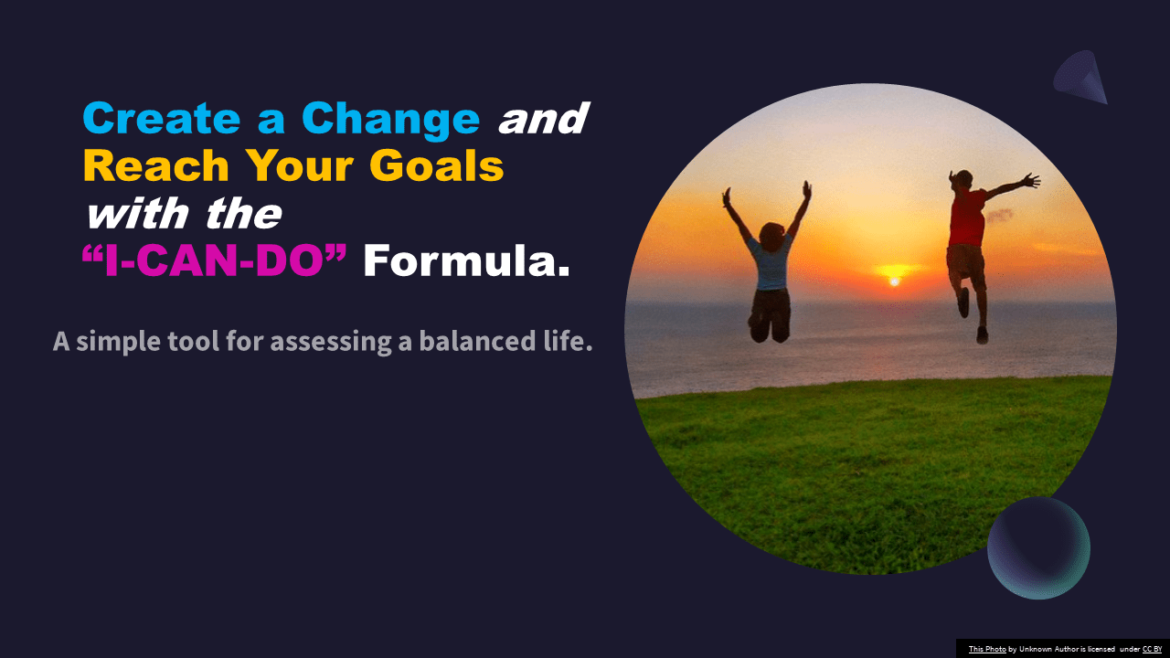 Change can be overwhelming, but change is possible. List each area that is important to you or you want to change. List any goal/dream that you want to reach. Then follow the “I-CAN-DO” formula to set yourself on the road to success. Be honest and get as detailed as possible as you go through this. Sometimes the areas you spend more time on, give a perspective of your priorities.