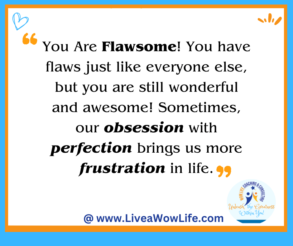 You Are Flawsome! You have flaws just like anyone else, but you are still wonderful and awesome! Sometimes, our obsession with PERFECTION brings us more FRUSTRATION in life.